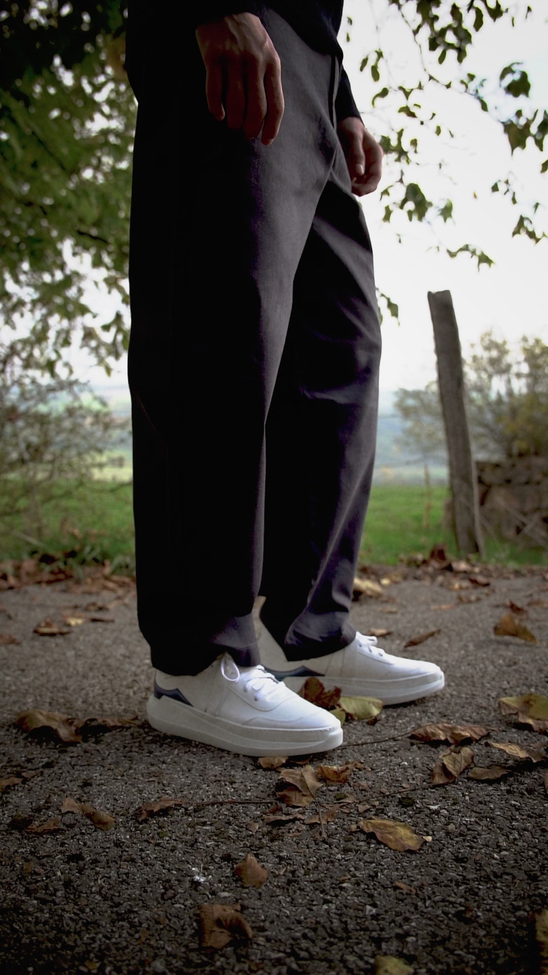 La G1 Bleu Abyssal joue sur un contraste subtil : une base blanche claire, rehaussée par un empiècement bleu profond. Une silhouette épurée, confortable, ponctuée d’une signature discrète et affirmée.